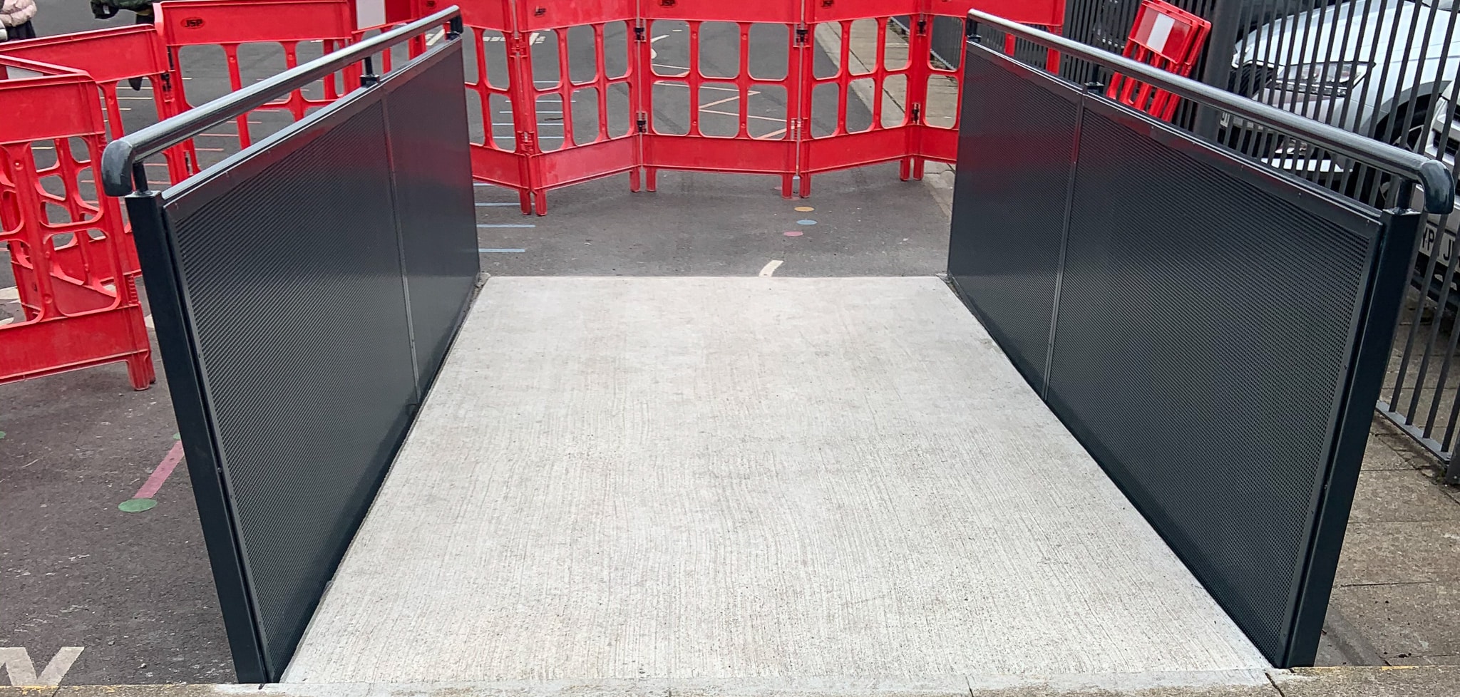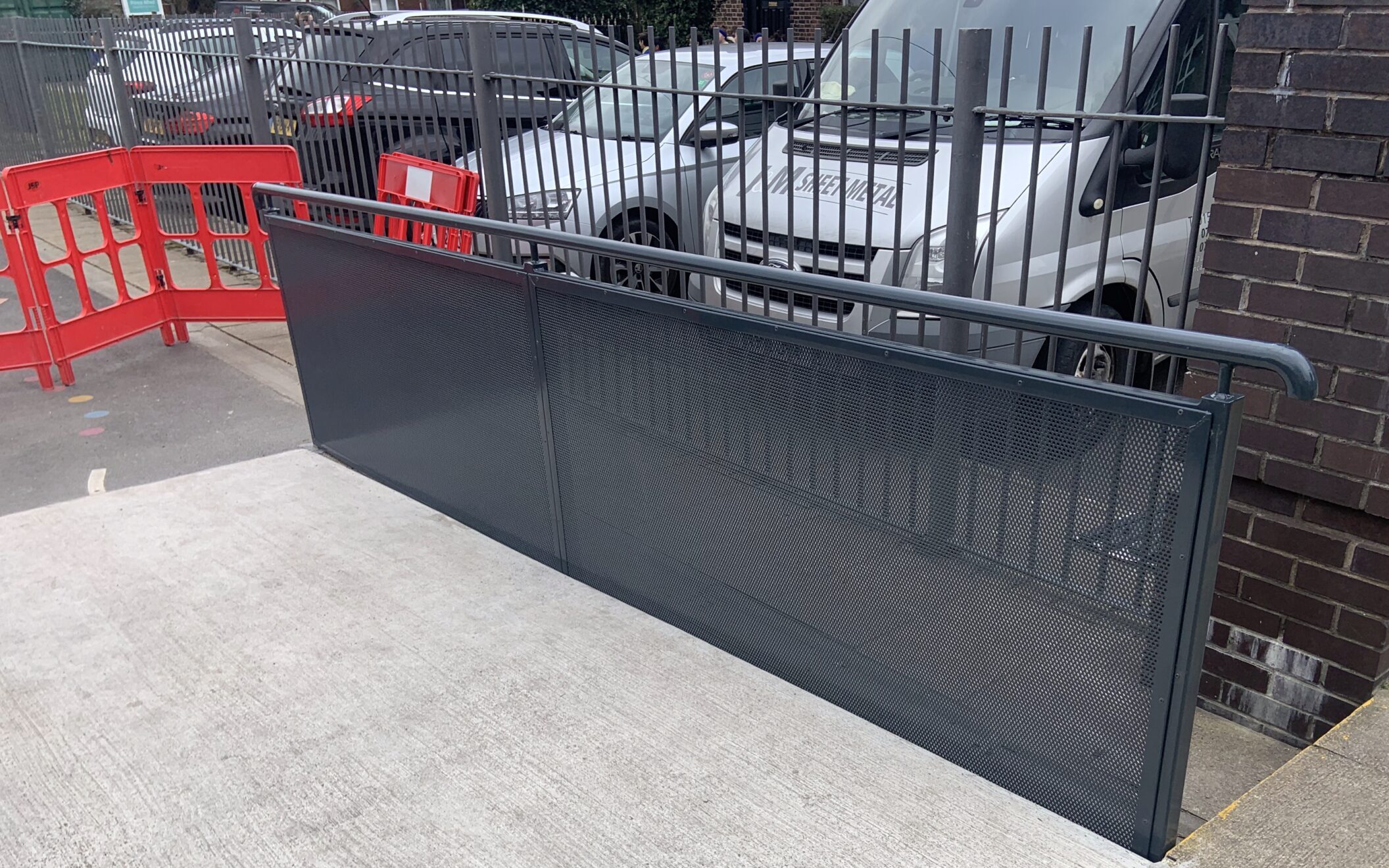 The completed works aimed to enhance safety and accessibility for students and visitors. A pedestrian guardrail with an integral double gate was installed along the kerb line near the school entrance to ensure controlled and secure access. In the playground, a concrete ramp was constructed to facilitate access to an adjacent footpath. Additionally, the existing footpath was adapted to better suit the new layout, and a speed hump was installed across the roadway. These improvements contribute to a safer environment for the school community.